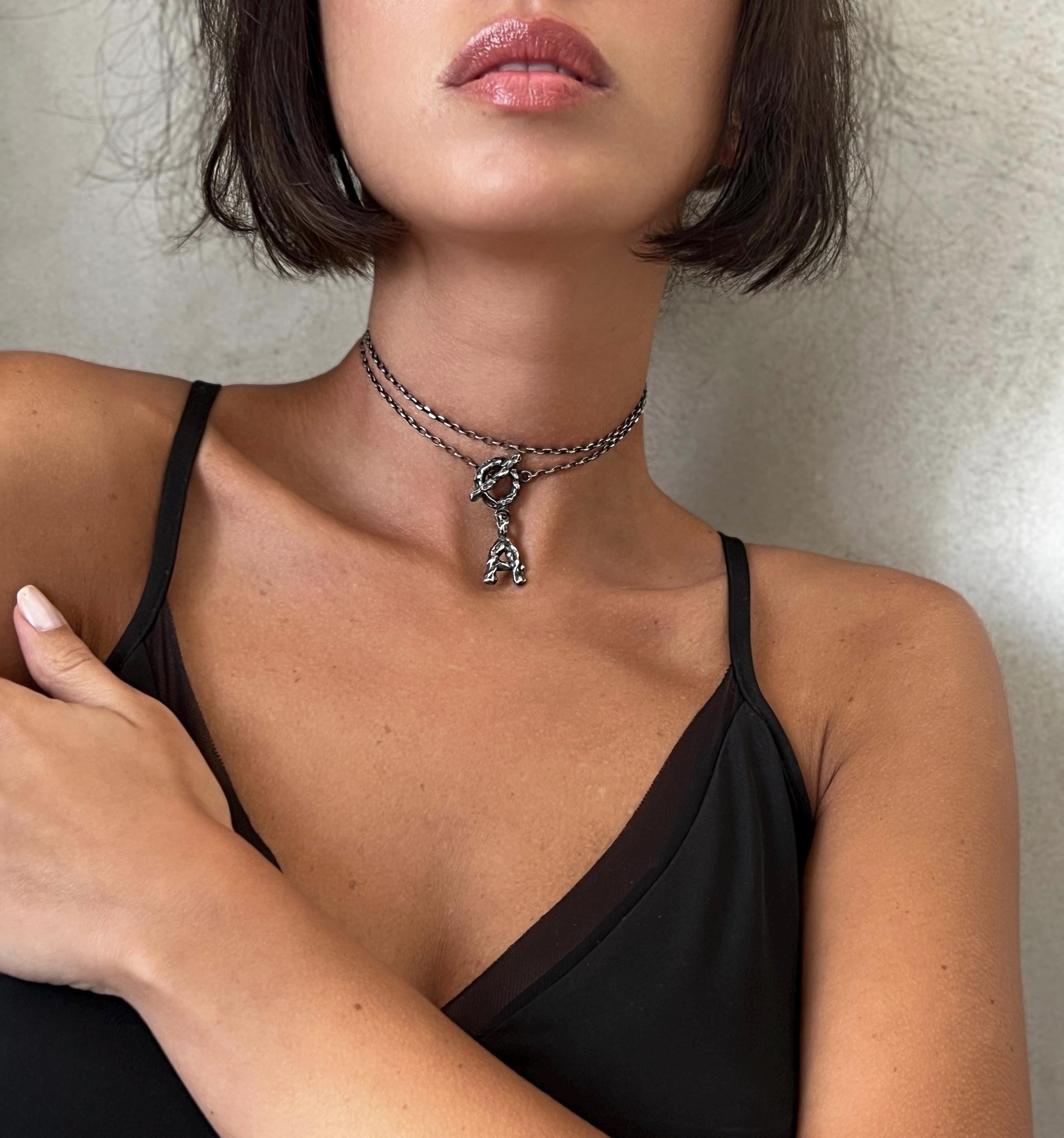 ანბანის გაშავებული ვერცხლის გულსაკიდი