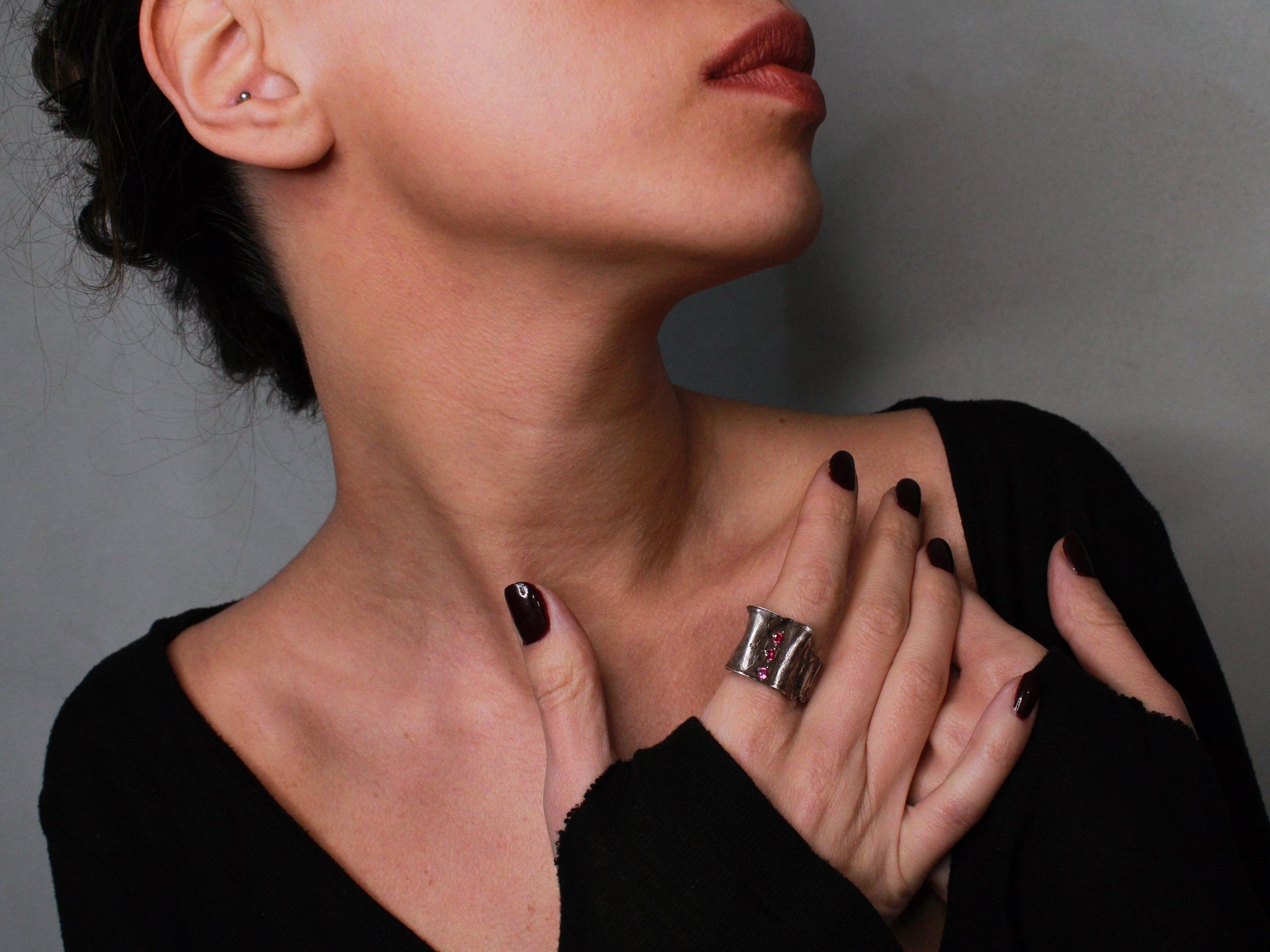 ხელნაკეთი 925 ვერცხლის ბეჭედი საფირის (კორუნდი) ქვით. ოქსიდირებული (გაშავებული) ვერცხლი.