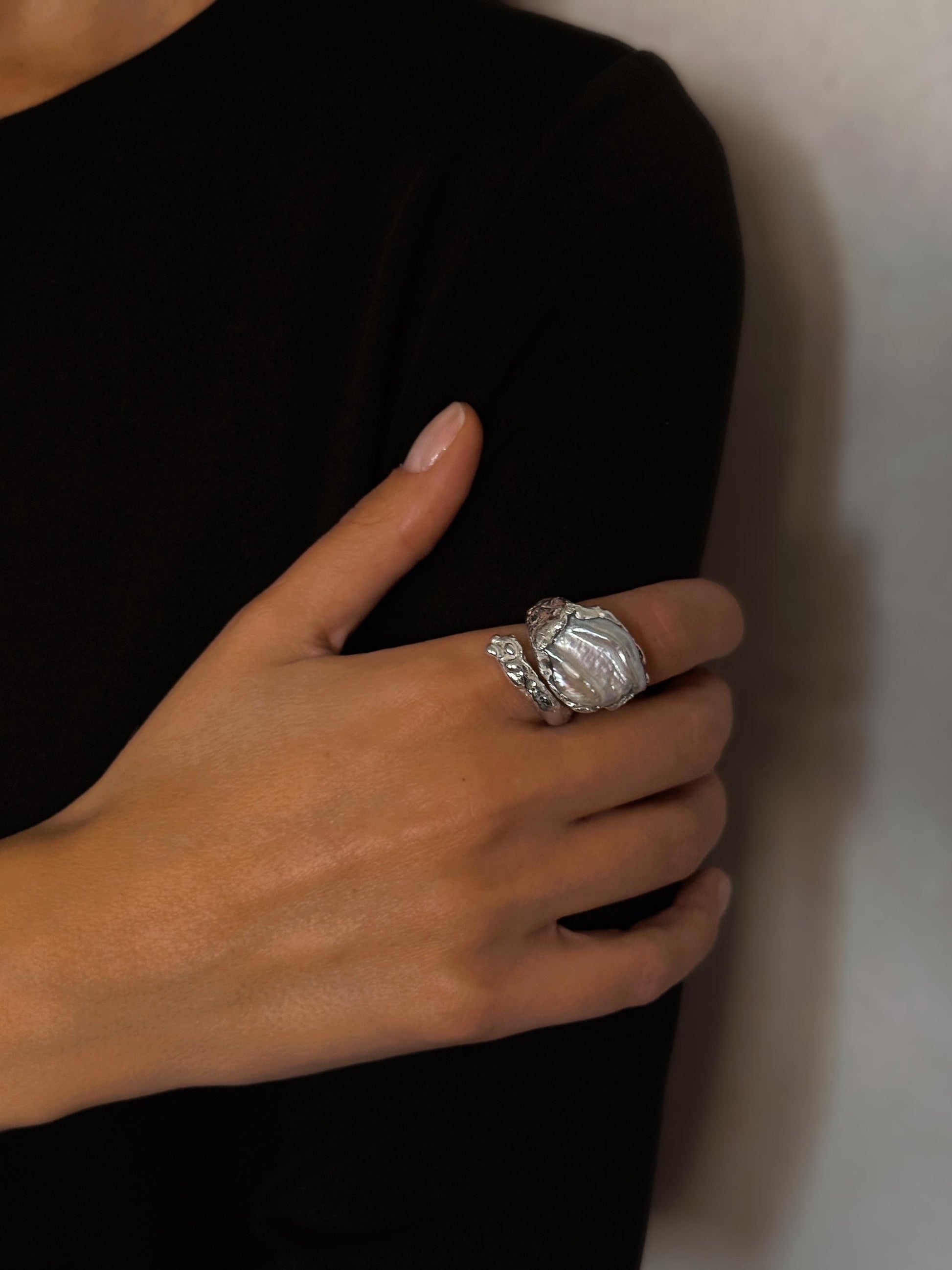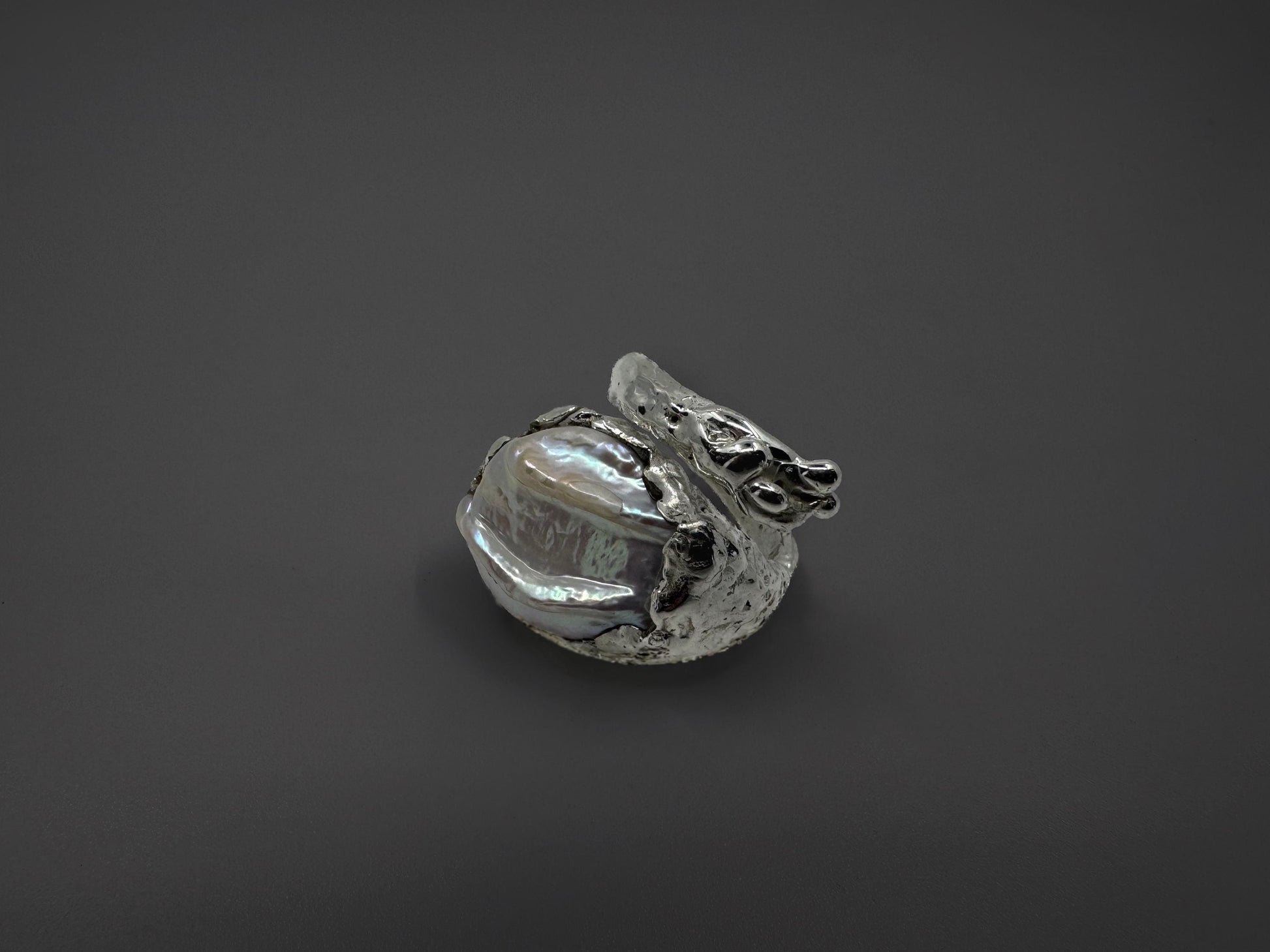 ხელნაკეთი 925 ვერცხლის ბეჭედი მარგალიტით.